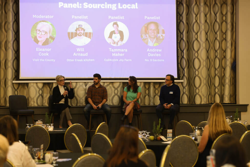 A panel discussion featured producers who provide local food and operators who serve it to visitors. Moderated by Eleanor Cook from Prince Edward County, was joined by guests Will Arnaud of Otter Creek Kitchen, Tammara Maher of Collective Joy Farm and Andrew Davies of No. 9 Gardens. Each spoke of the importance of growing and sourcing locally grown food and a good place to start is at farmers’ markets. Will shared that being a member of the national food certification program, Feast-On goes a long way incredibility, as it recognizes businesses that are committed to sourcing Ontario-grown food and drink. Agri-tourism is another great way to help secure sustainability as it teaches others about farming and offers programs and activities for visitors.